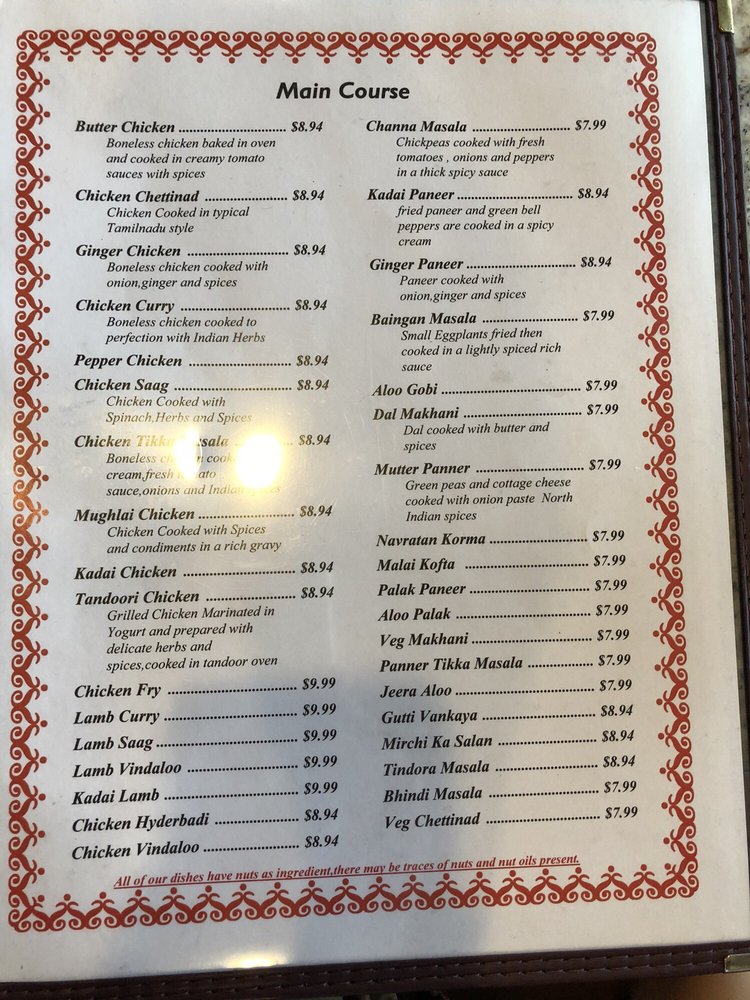 Boneless chicken withspices, yogurt, cashews, crushed red pepper.