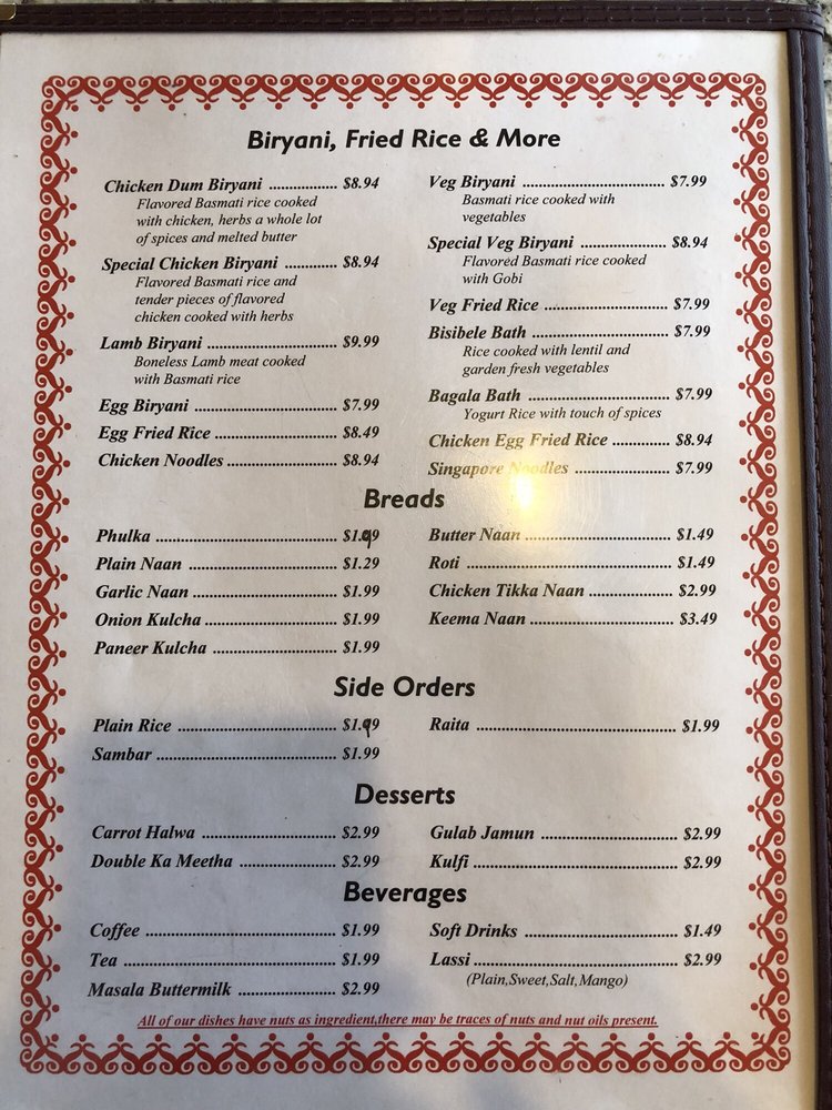 Namaste Flavours Canton in Canton, MI offers a wide range of Indian cuisine with a variety of vegetarian and vegan options. The restaurant provides a classy and quiet dining experience, suitable for lunch or dinner. The menu features flavorful dishes like Chicken Dum Biryani, Chicken Egg Fried Rice, and Goat Biryani, all cooked with a blend of herbs and spices. Their selection of bread, including Butter Naan and Garlic Naan, is freshly baked and delicious. For appetizers, the Gobi Manchurian and Chili Paneer are must-try dishes. With amenities like outdoor seating, Wi-Fi, and a military discount, Namaste Flavours Canton caters to a diverse customer base. Visit for a taste of authentic Indian flavors in a welcoming atmosphere.